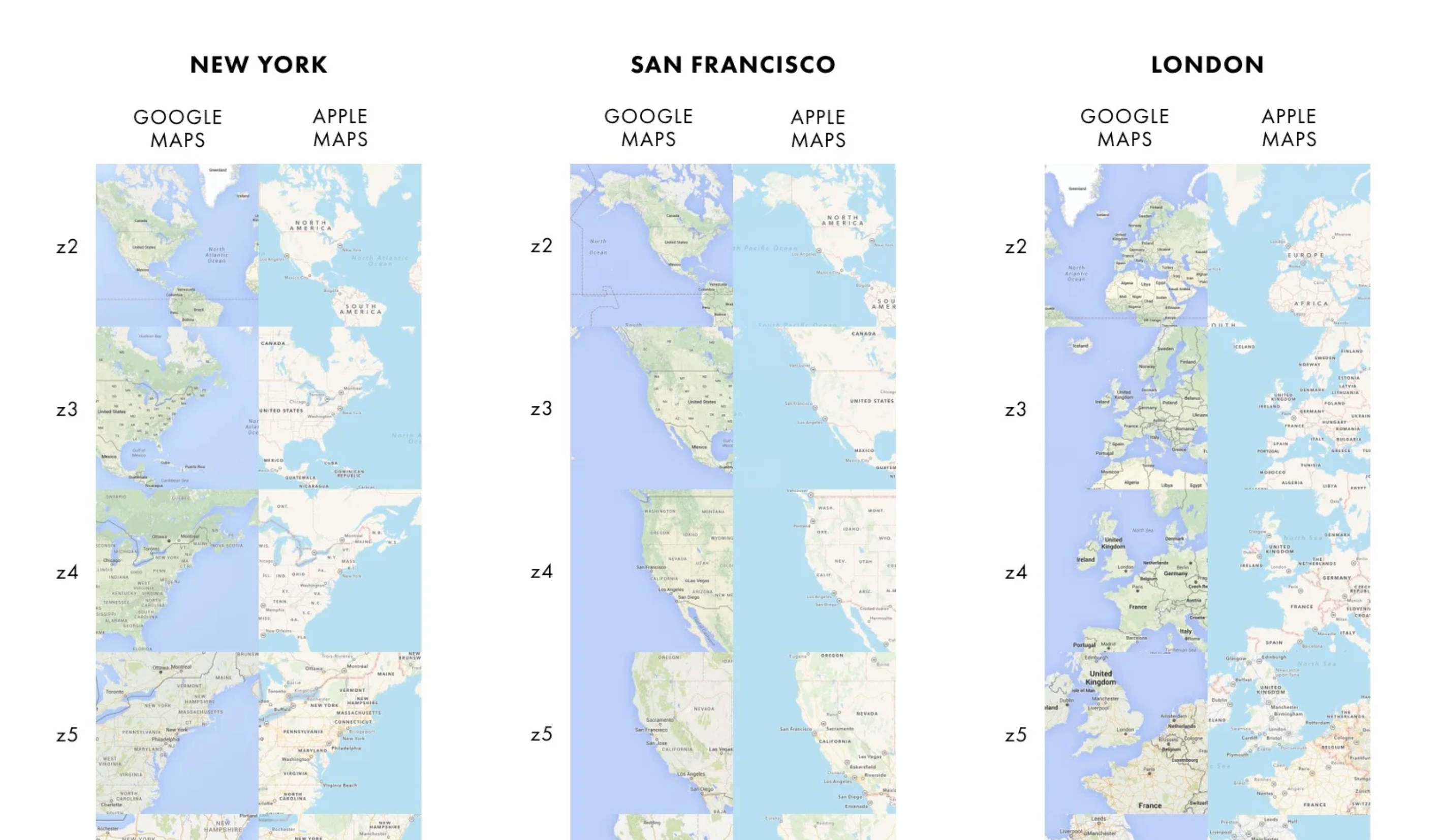 “Though they look similar, Google Maps and Apple Maps present surprisingly different views of the world.” Very interesting read by Justin O’Beirne.